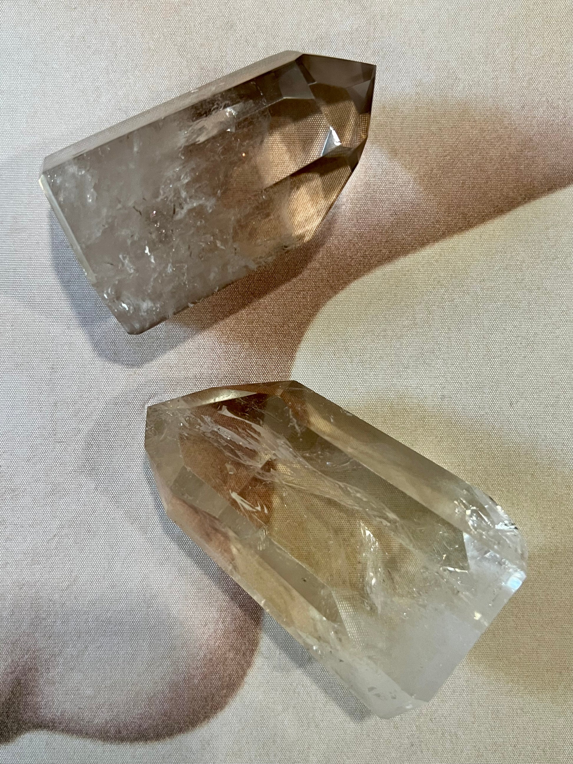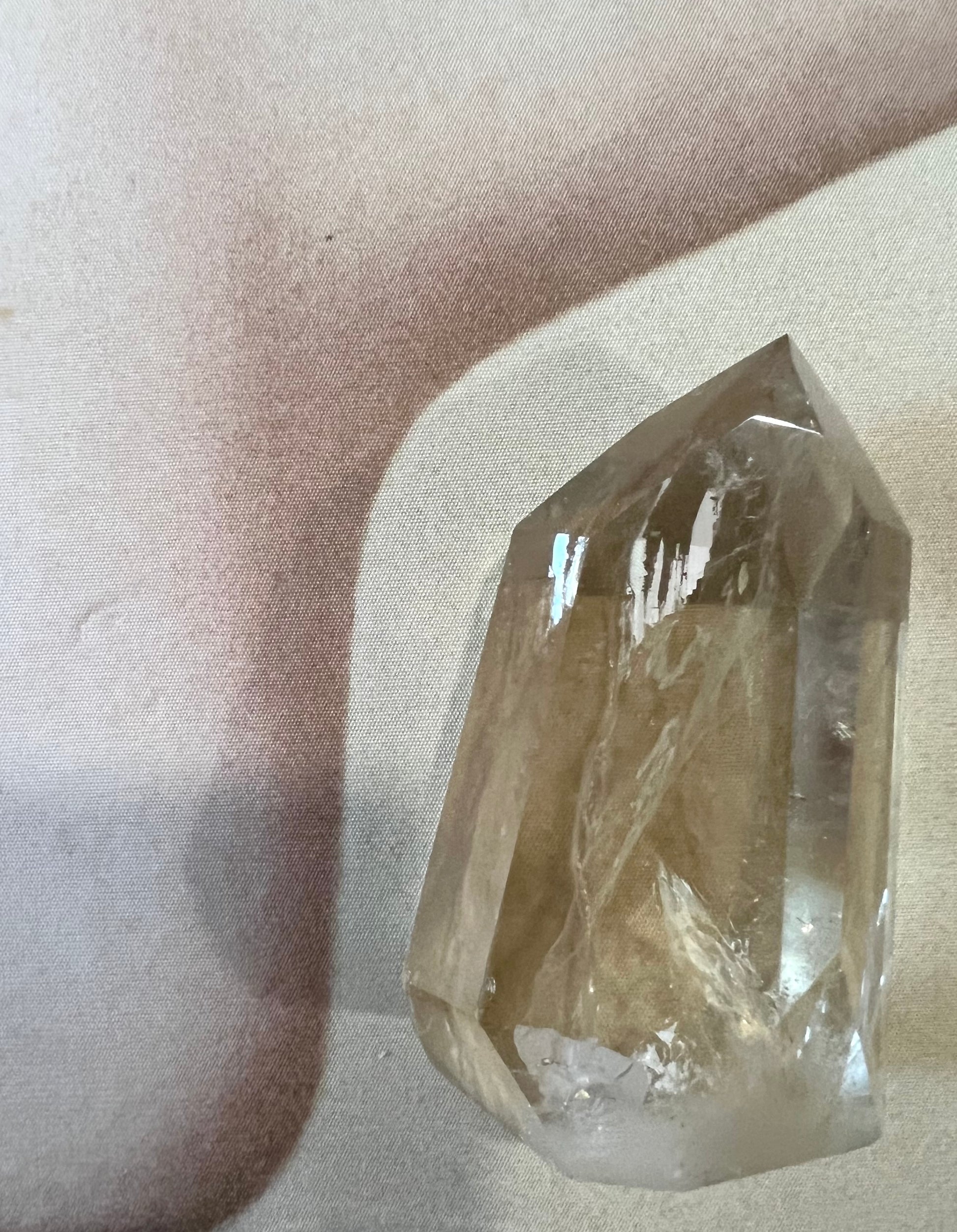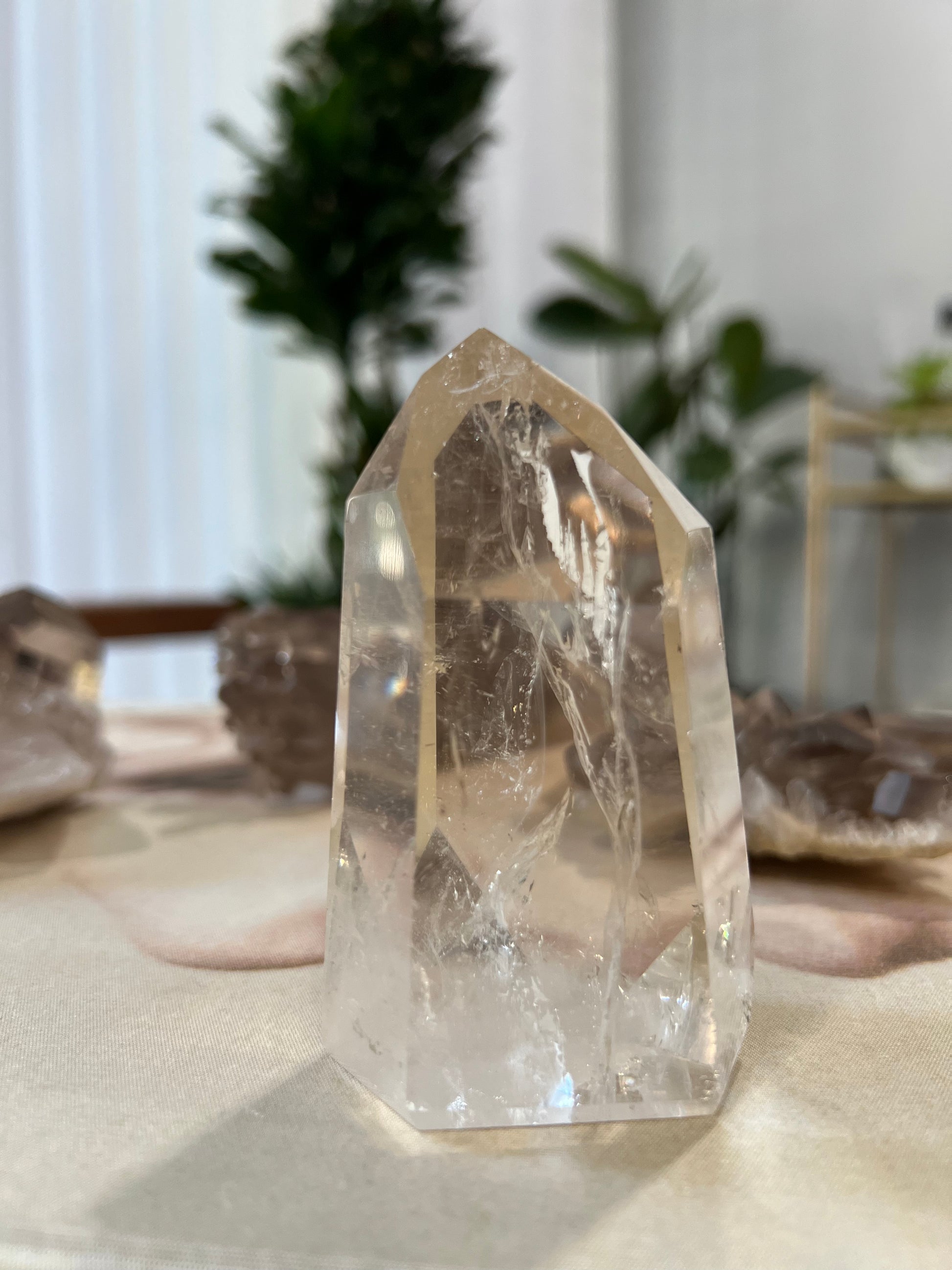 Light yellow Citrine tower from Brazil. Beautiful clarity and rainbows. Soft pale yellow that radiates energy.