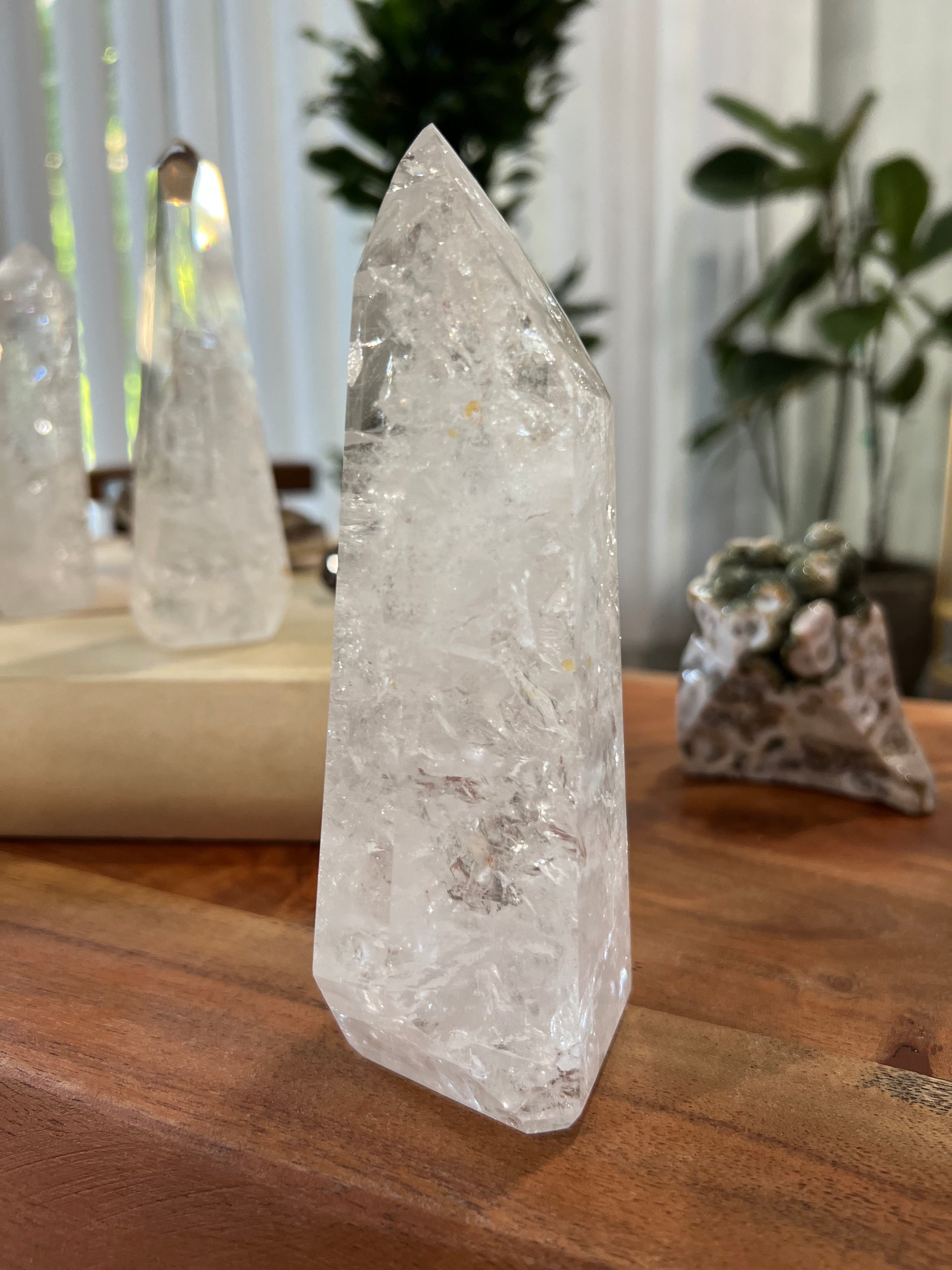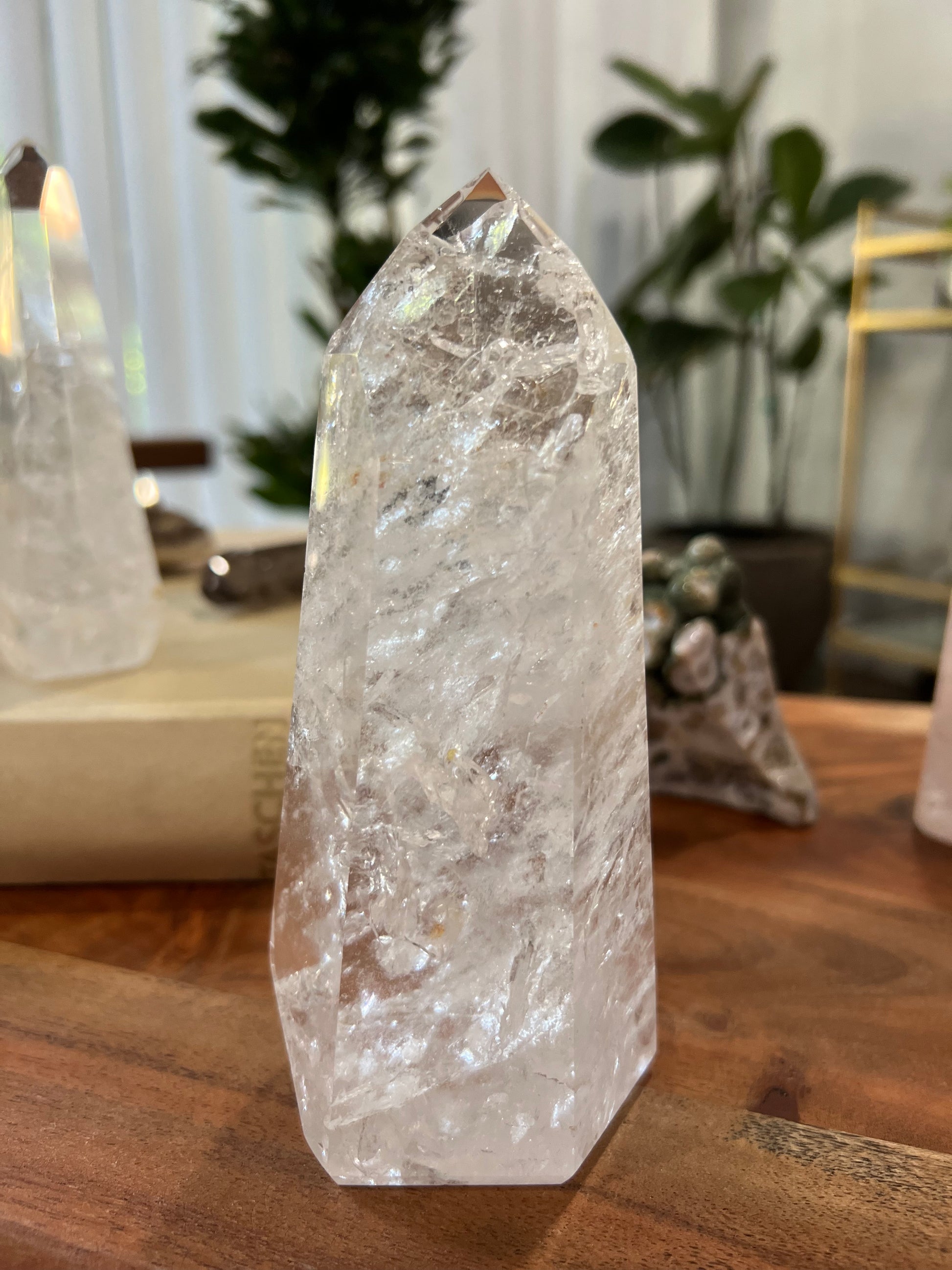 Beautiful clear quartz tower with incredible clarity, luster, and rainbows. From Brazil.